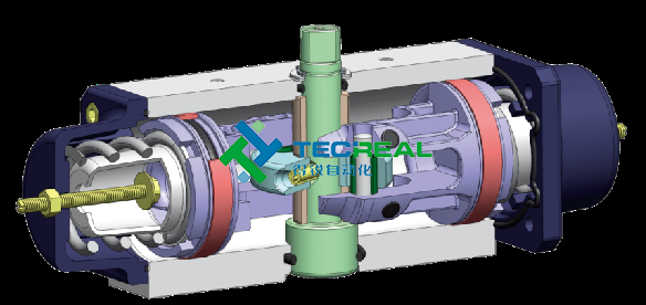 撥叉式氣動(dòng)執(zhí)行器不僅符合防爆要求,而且體積小,重量輕,扭矩大,因其采用了獨(dú)特的“單氣缸雙活塞-撥叉式變扭矩”傳動(dòng)結(jié)構(gòu)設(shè)計(jì)。