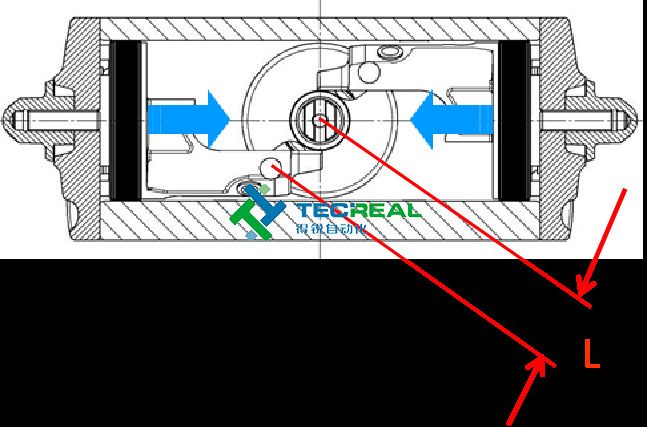 其次,撥叉式氣動(dòng)執(zhí)行器運(yùn)作時(shí),輸出力扭能隨角度改變而改變,而且在閥門開啟或關(guān)閉位置,力矩值最大,這正好與閥門的規(guī)律相符。 相比齒輪齒條式執(zhí)行器,撥叉式氣動(dòng)執(zhí)行器和更能節(jié)省力矩,因?yàn)辇X輪齒條式執(zhí)行器的力矩是恒定。