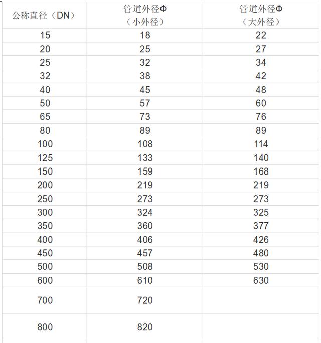 (1) 管件尺寸與閥門通徑及英寸對(duì)照表: