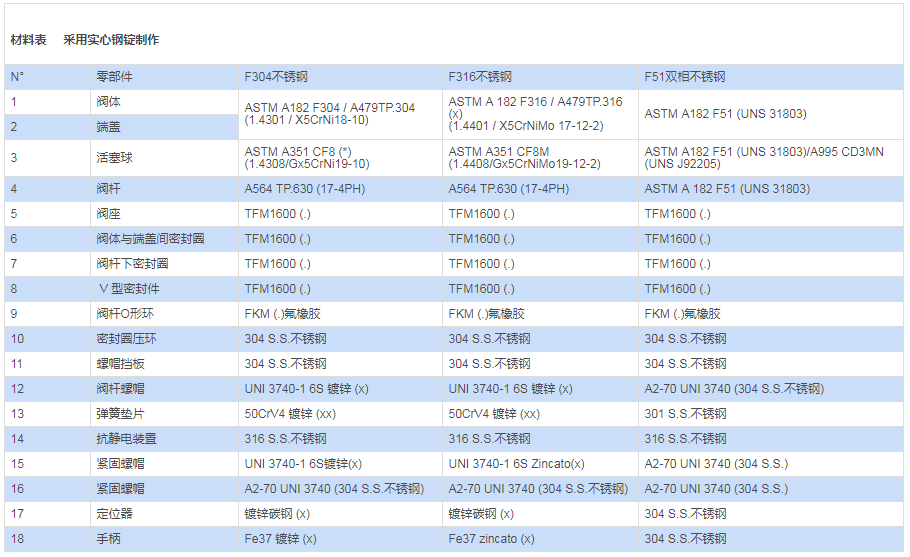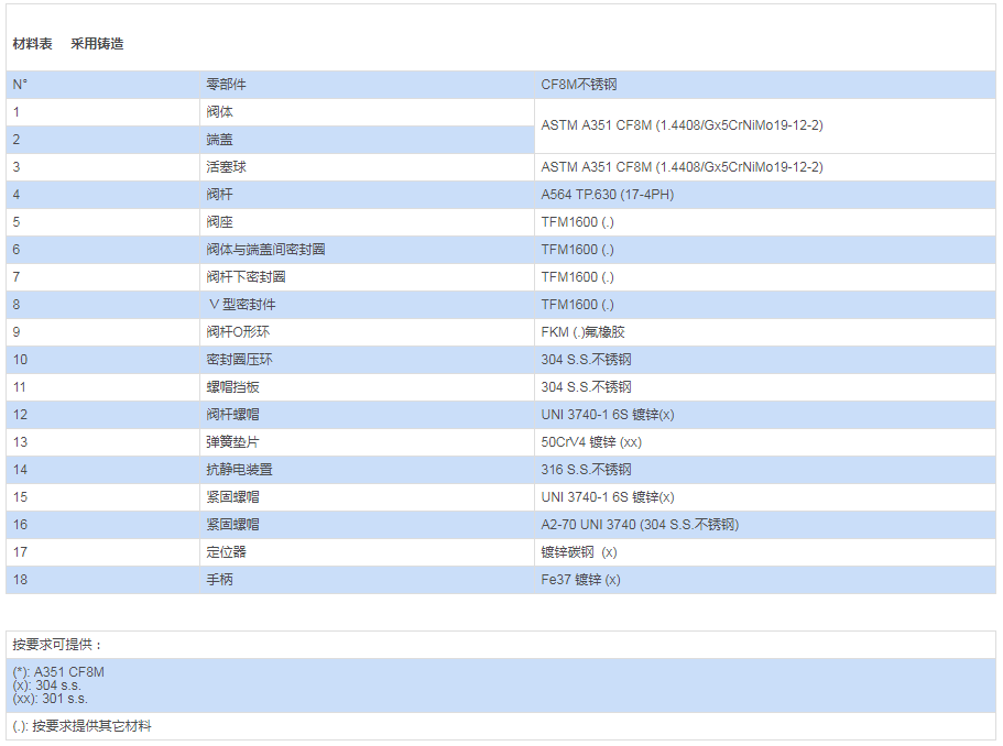 采用材料(用于閥體/活塞球/閥桿)與標(biāo)準(zhǔn)配置不同的參數(shù)要求,請與我們的銷售部門聯(lián)系