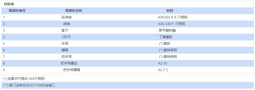 | (**):閥門(mén)沒(méi)有符合ISO F04的連接口 |