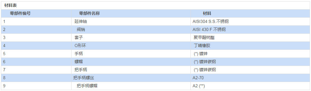 | (*):按要求可提供 304不銹鋼 |